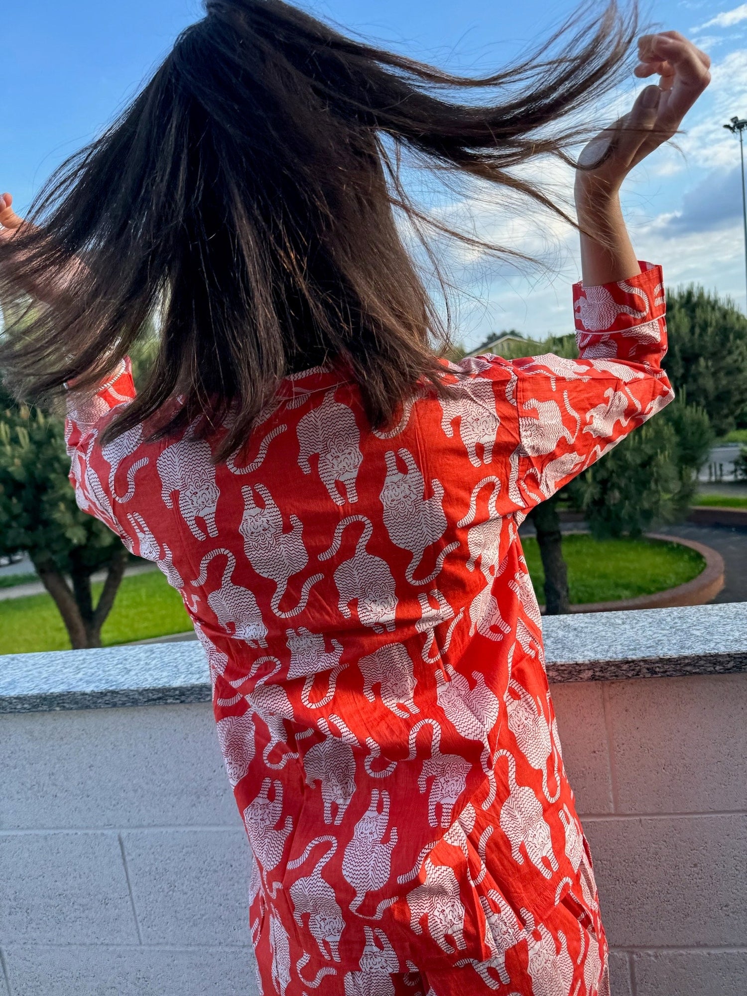 Pigiama 100% puro cotone organico fantasia animalier, made in Jaipur