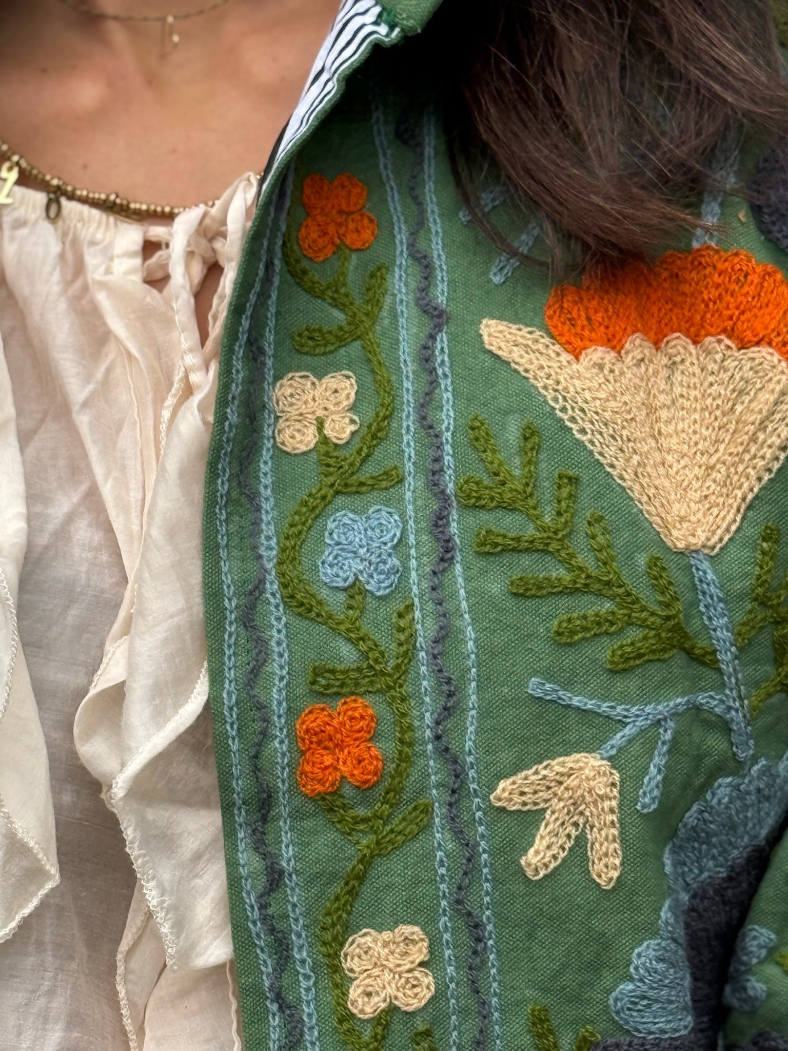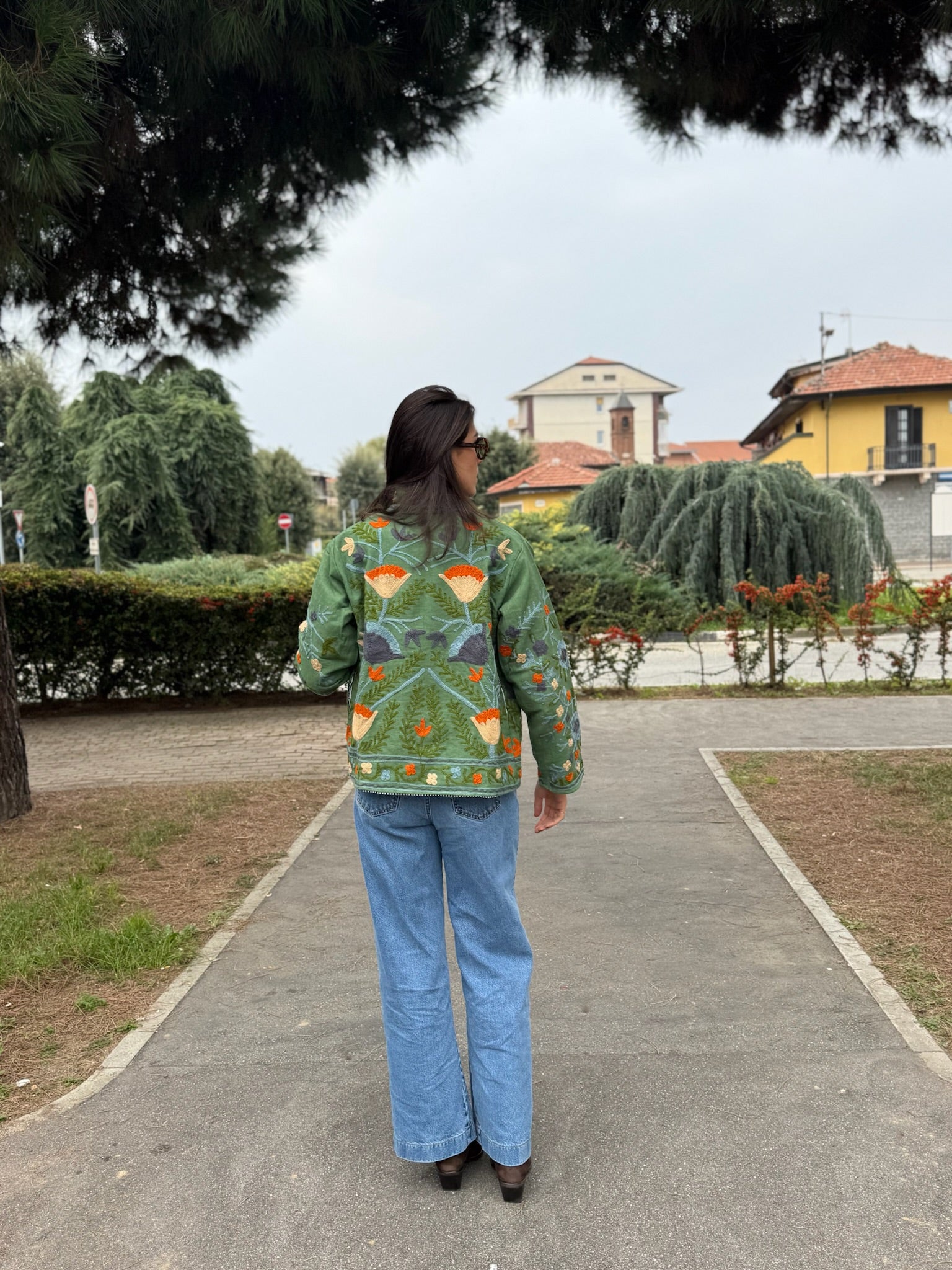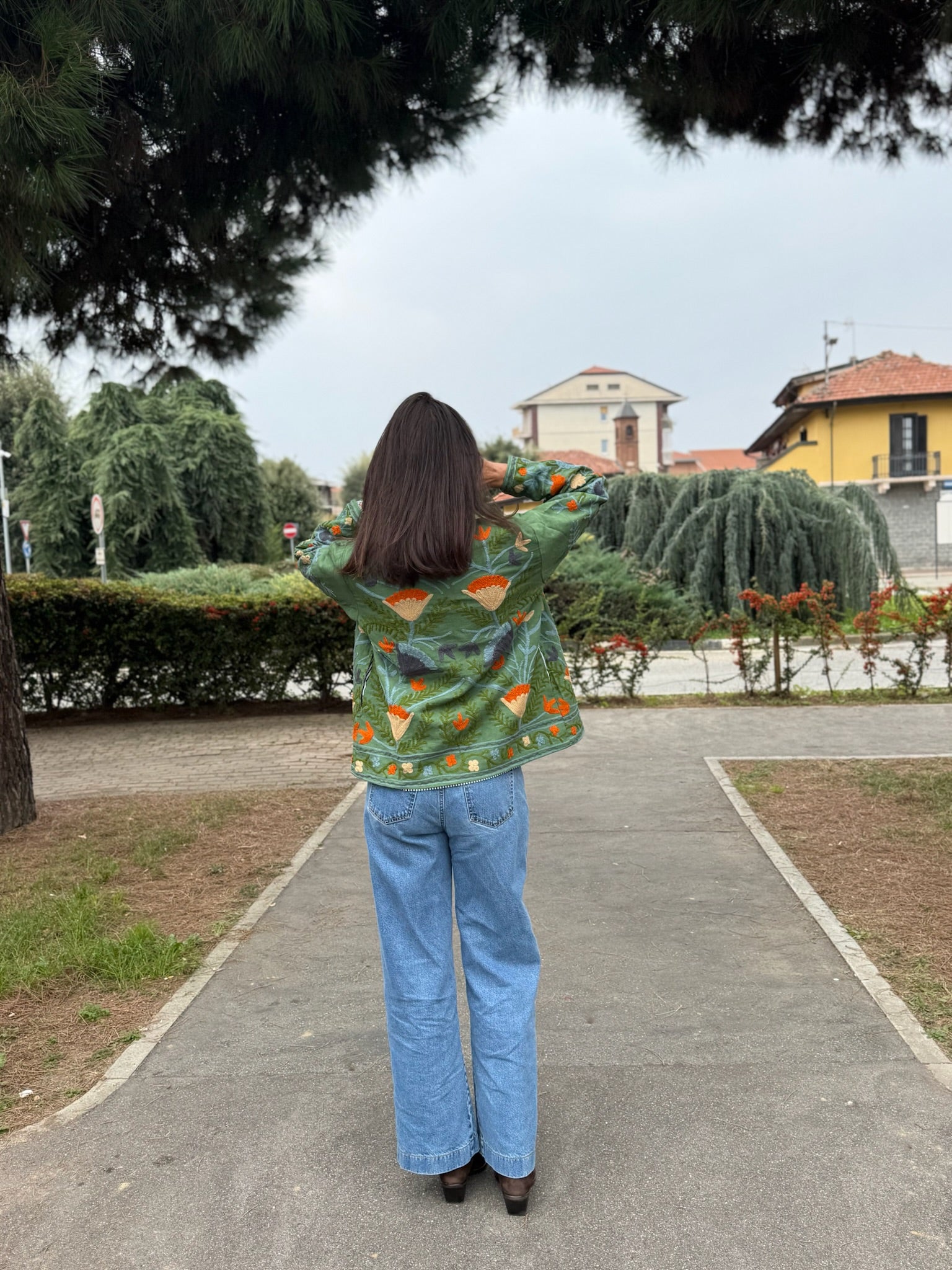 Giacca verde scuro stile boho ricamata a mano, made in Jaipur