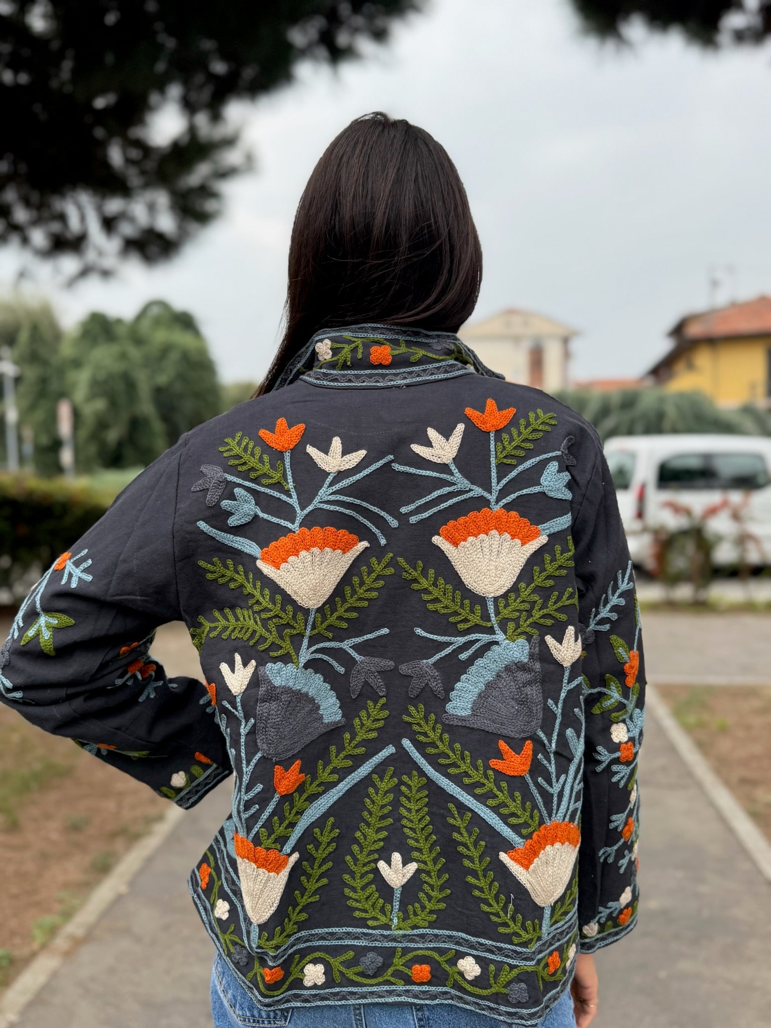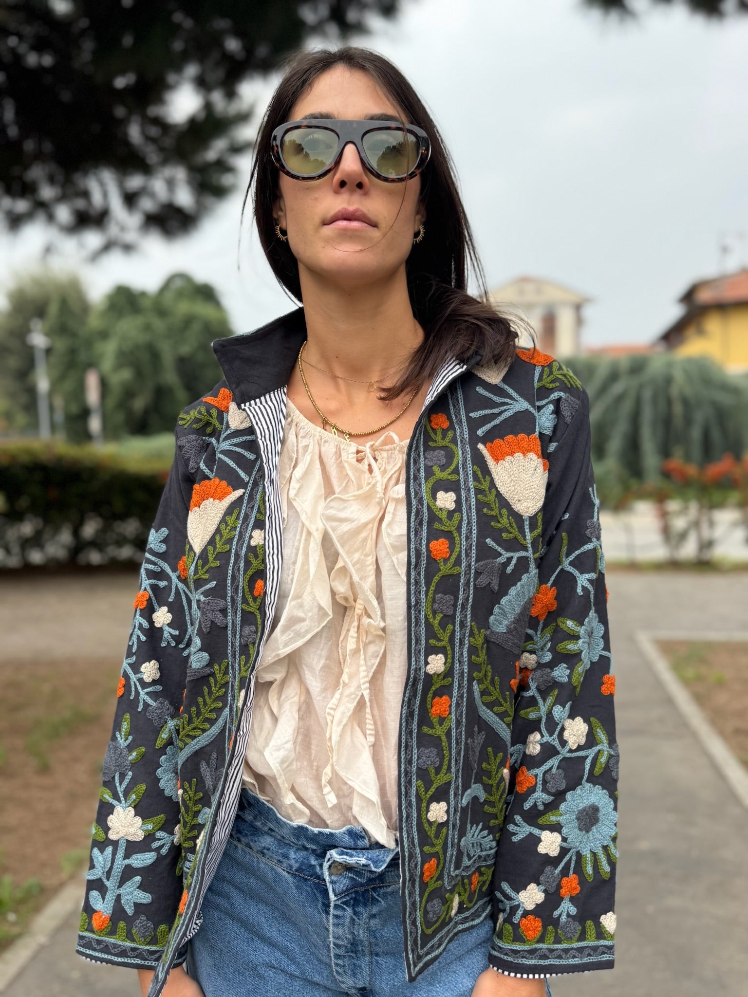 Giacca blu scuro stile boho ricamata a mano, made in Jaipur