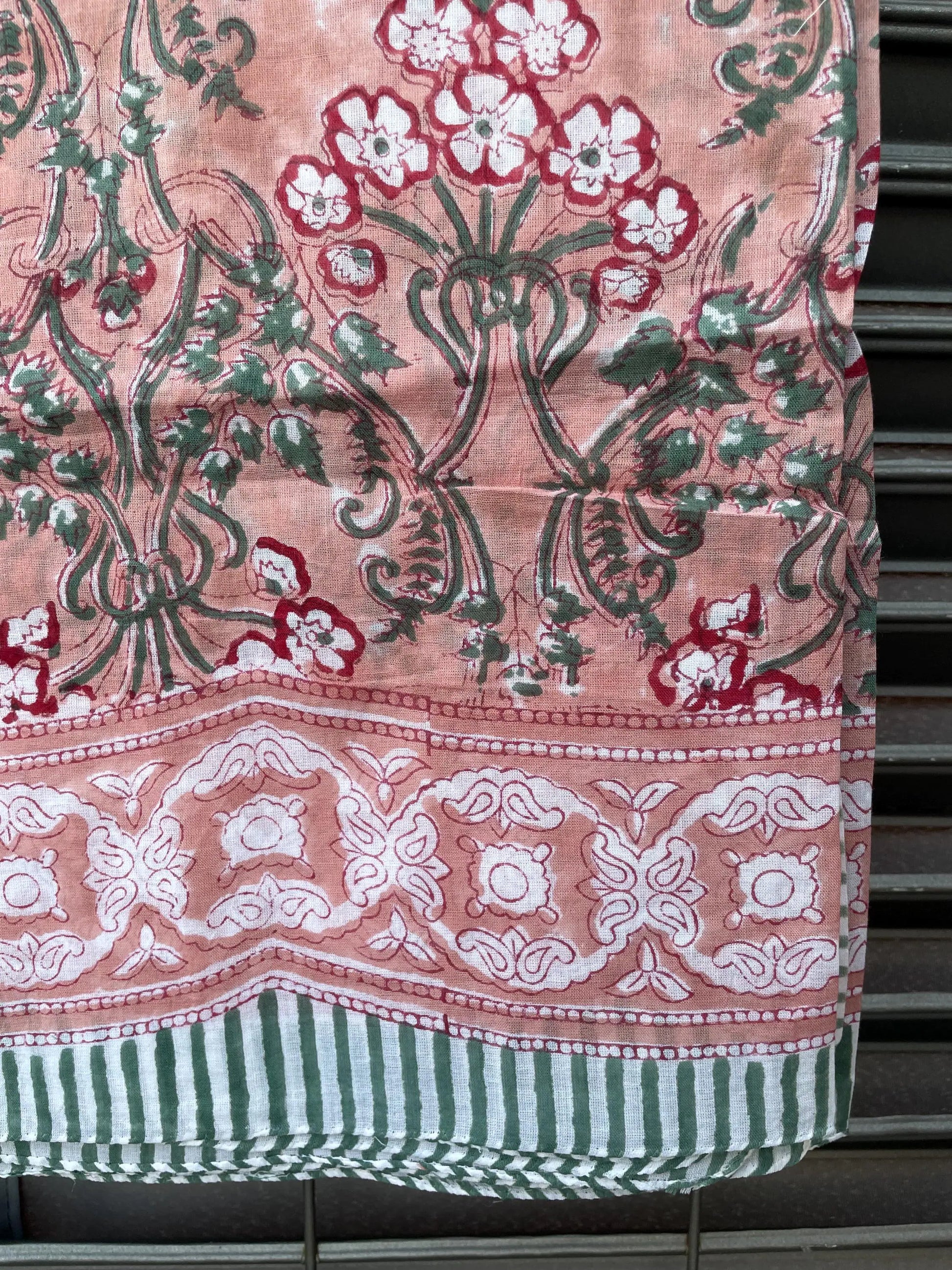 Pareo in mussola di cotone, tessuto stampato a mano. Fantasia floreale .A13