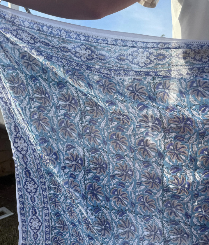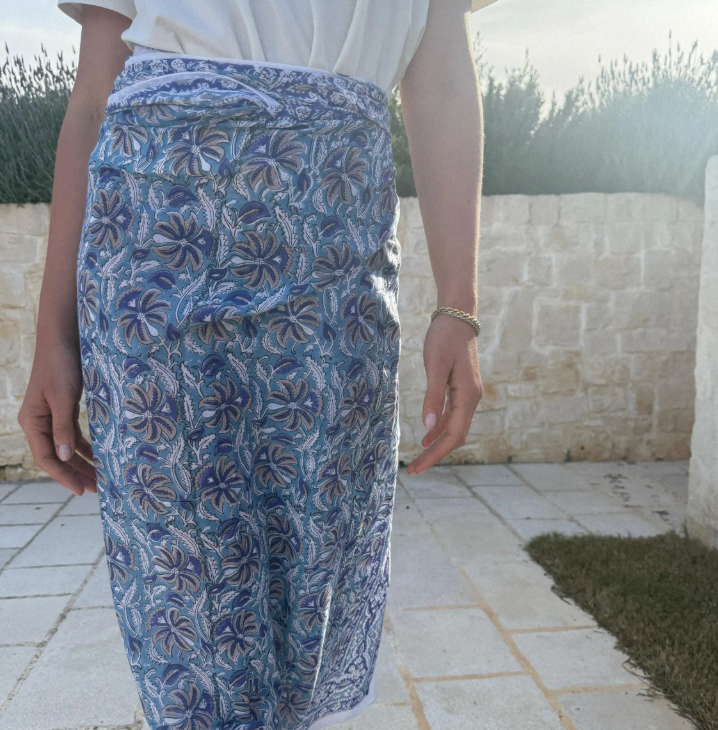 Scopri il nostro meraviglioso pareo sarong in mussola di cotone 100%, realizzato interamente a mano con la tecnica tradizionale della stampa a blocchi su tessuto. Questo accessorio è un vero must-have per l’estate: leggerissimo, traspirante e incredibilmente versatile.