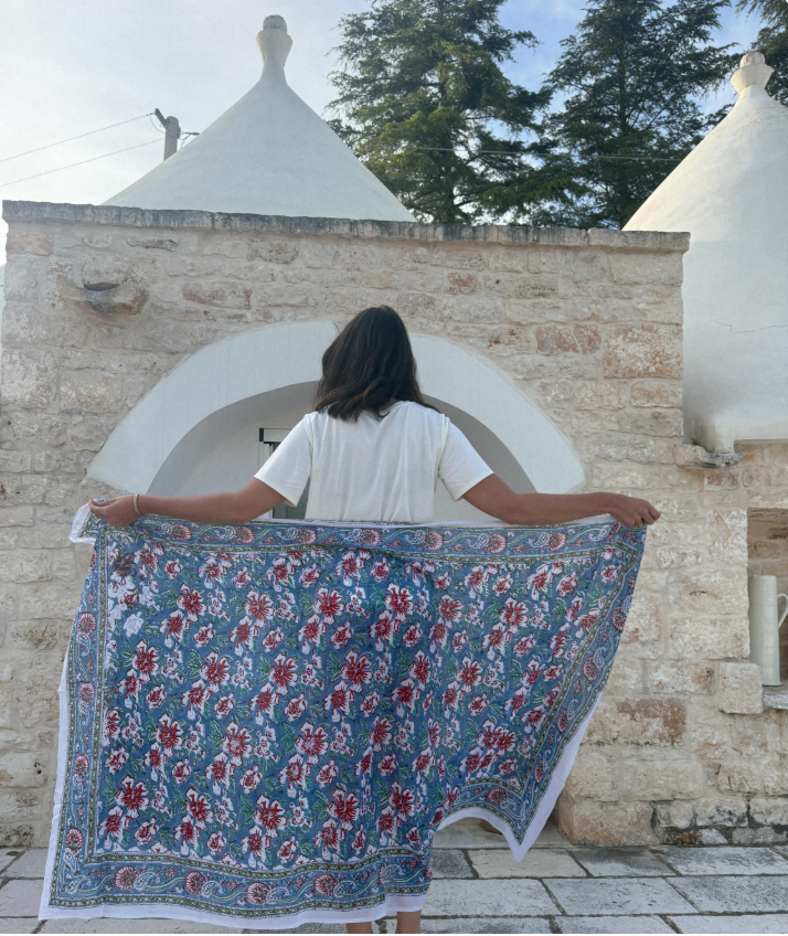 Scopri il nostro meraviglioso pareo sarong in mussola di cotone 100%, realizzato interamente a mano con la tecnica tradizionale della stampa a blocchi su tessuto. Questo accessorio è un vero must-have per l’estate: leggerissimo, traspirante e incredibilmente versatile.