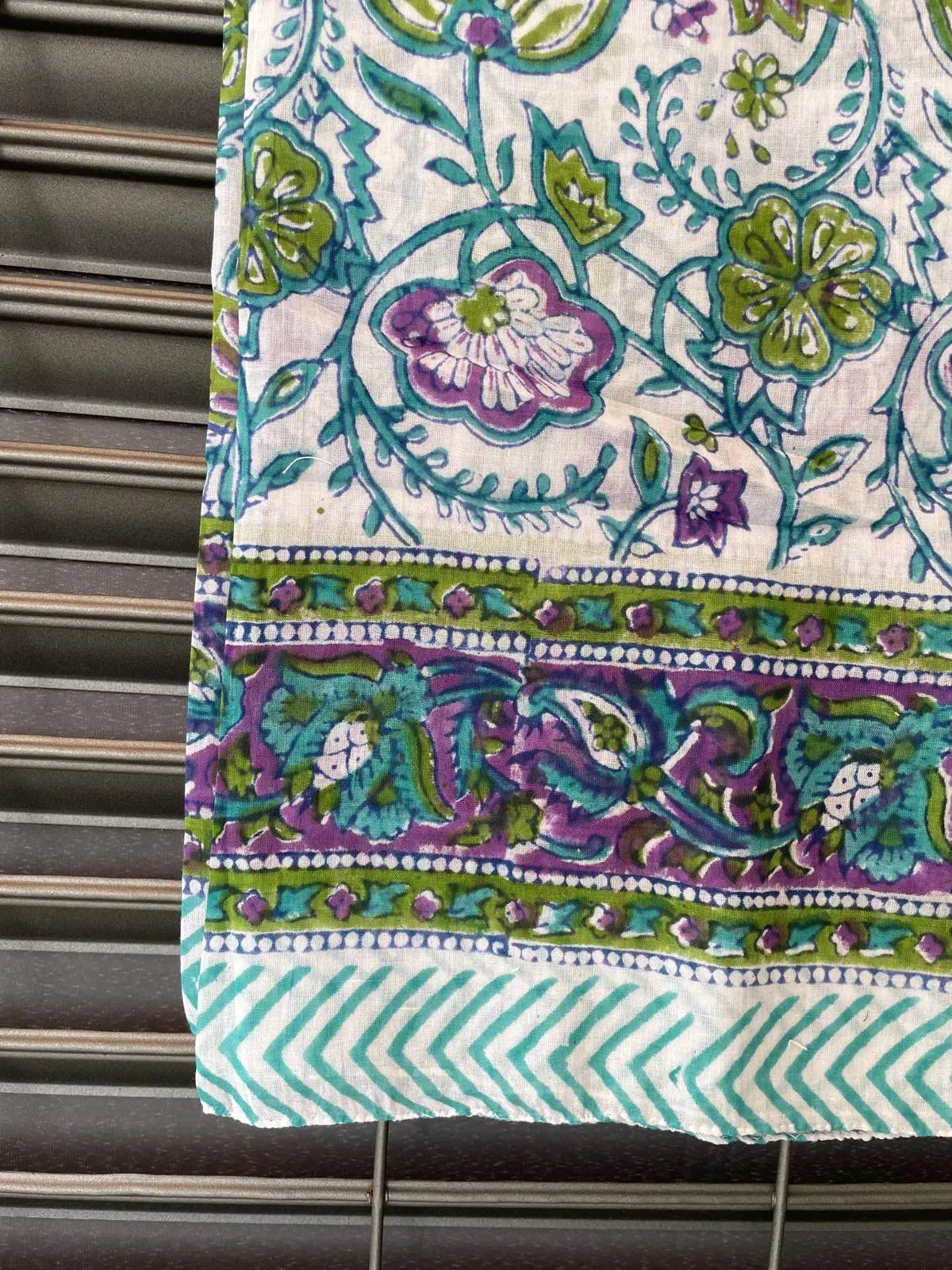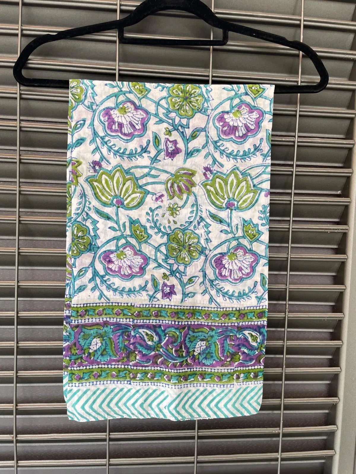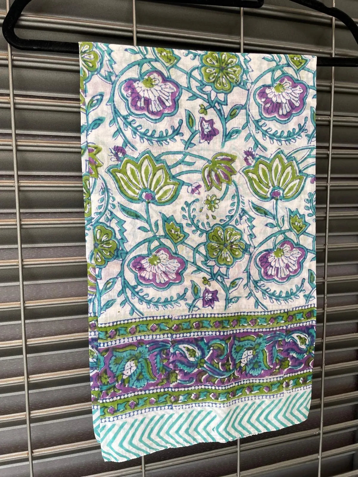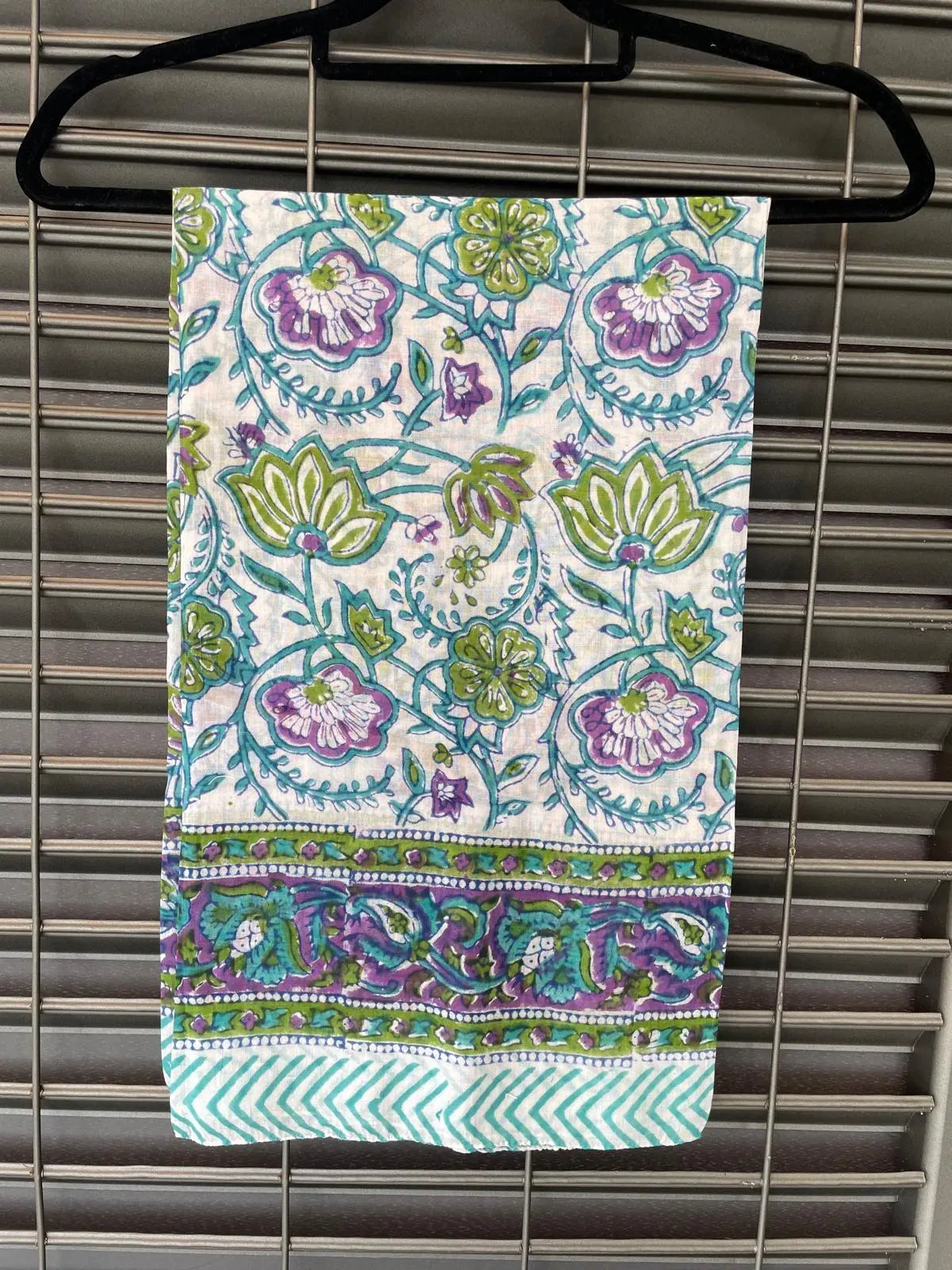 Pareo in mussola di cotone, tessuto stampato a mano. Fantasia floreale .A43