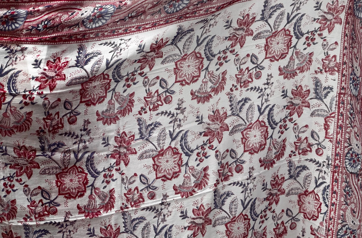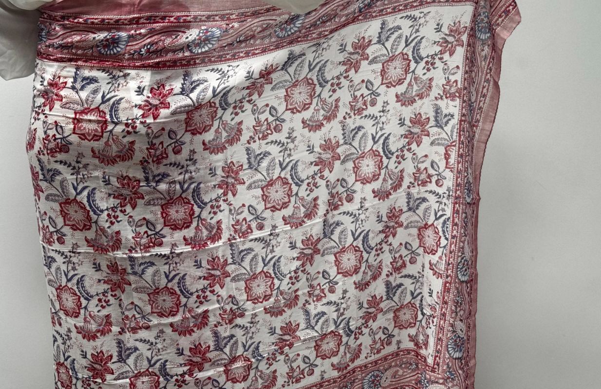 Pareo in mussola di cotone, tessuto stampato a mano. Fantasia floreale .A49