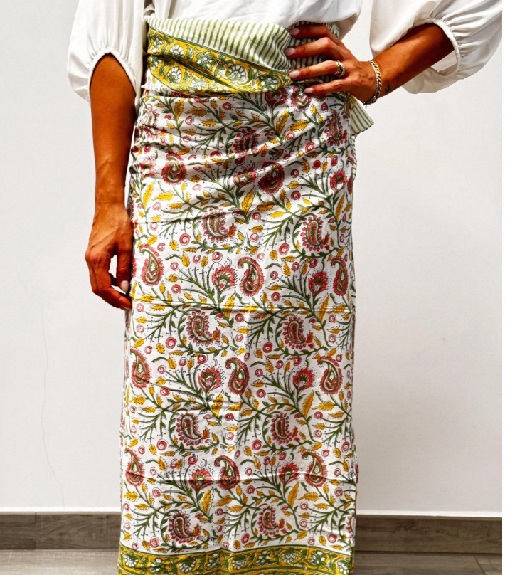 Scopri il nostro meraviglioso pareo sarong in mussola di cotone 100%, realizzato interamente a mano con la tecnica tradizionale della stampa a blocchi su tessuto. Questo accessorio è un vero must-have per l’estate: leggerissimo, traspirante e incredibilmente versatile.