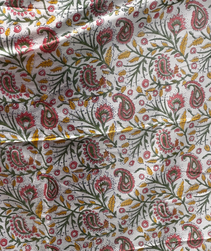Pareo in mussola di cotone, tessuto stampato a mano. Fantasia floreale .A50
