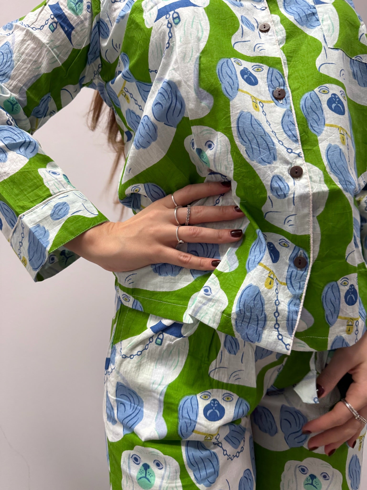 Realizzato interamente a mano dai nostri artigiani a Jaipur, questo pigiama è un omaggio all’eleganza e alla bellezza dell’artigianato autentico. Il tessuto in cotone organico, morbido e leggero, è stampato a mano secondo le tecniche tradizionali, rendendo ogni pezzo unico.