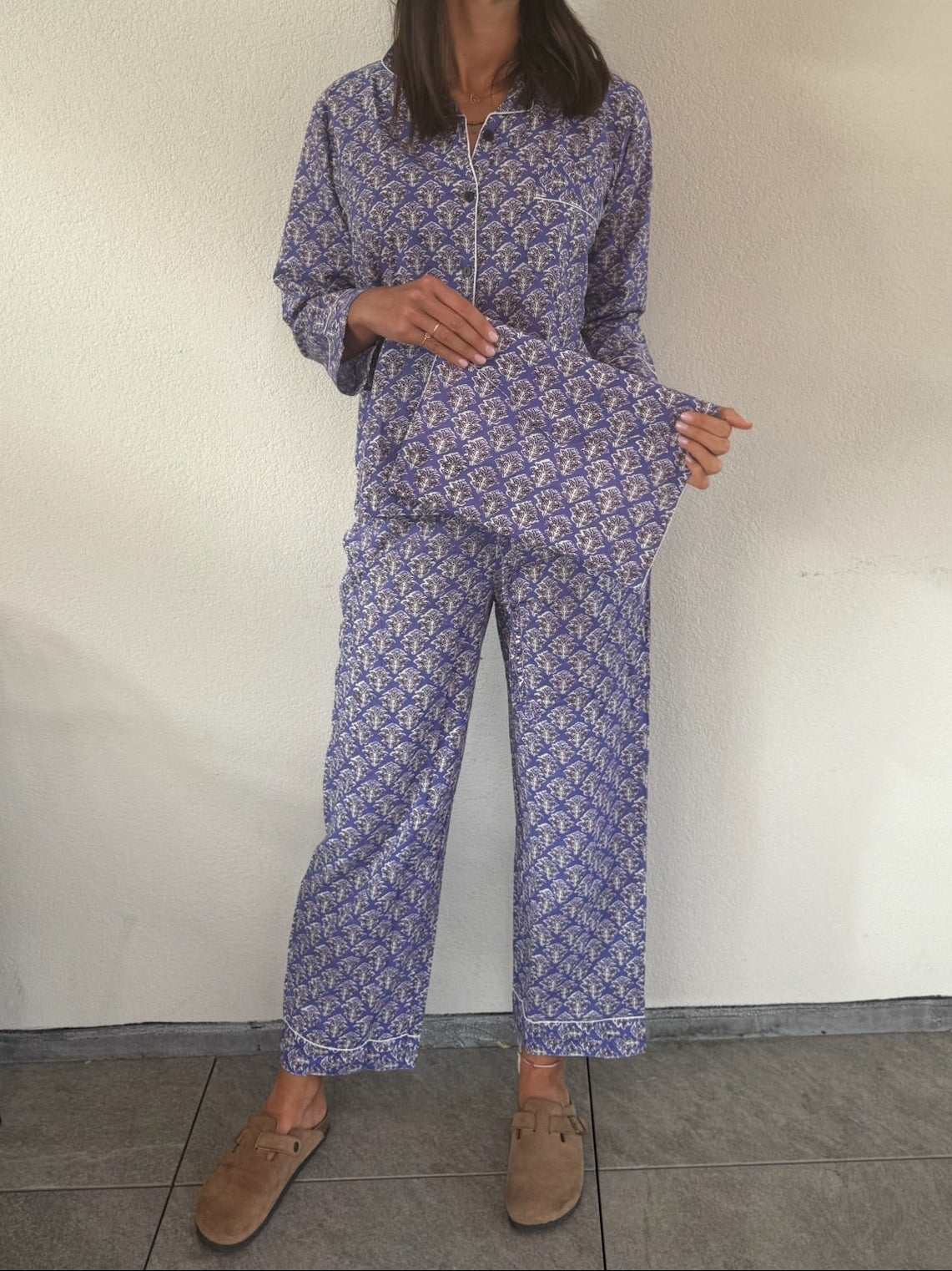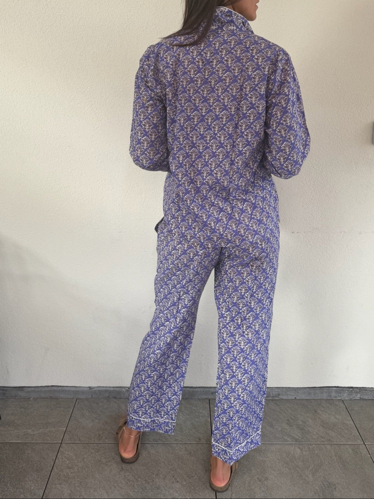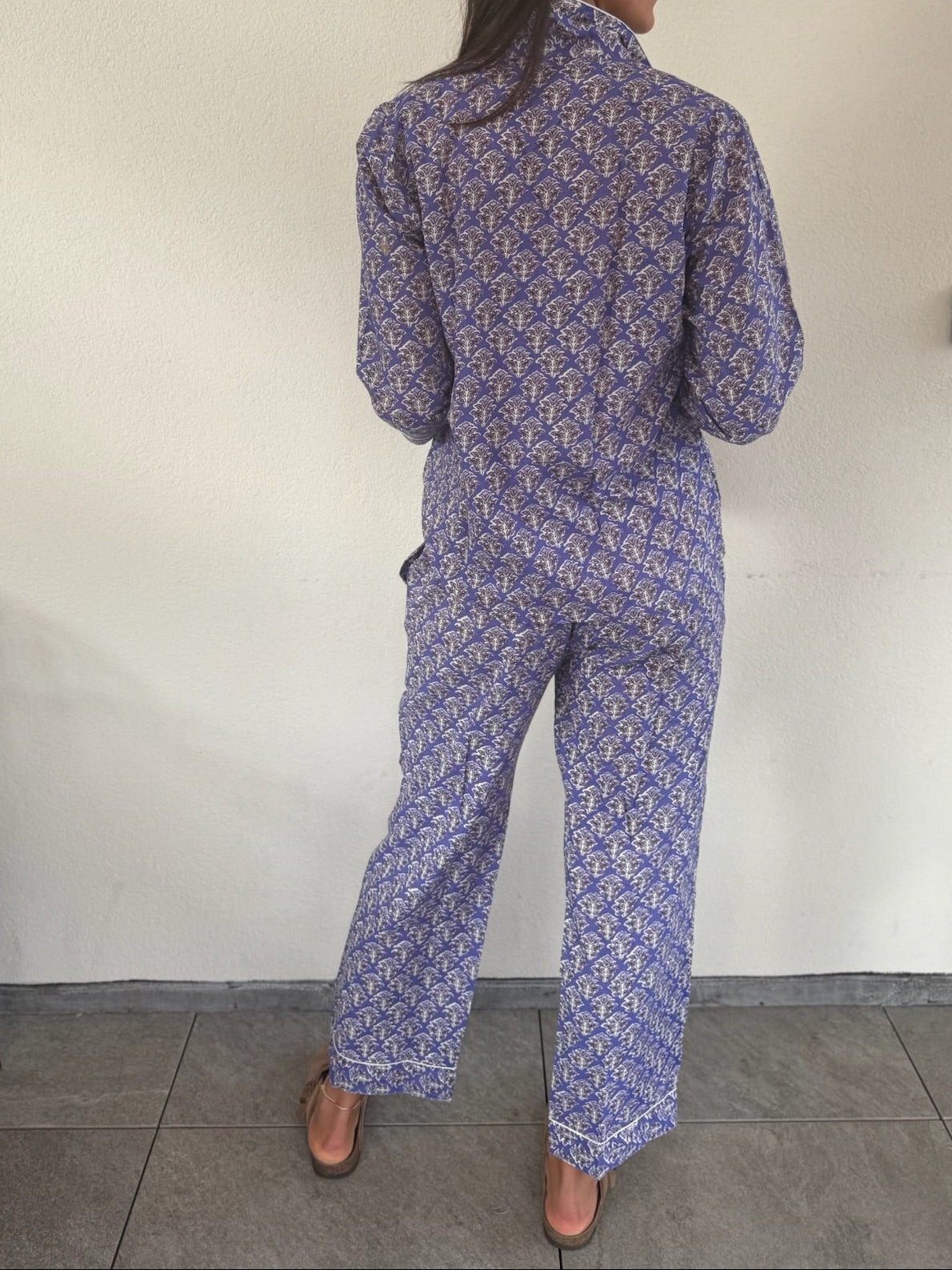 Realizzato interamente a mano dai nostri artigiani a Jaipur, questo pigiama è un omaggio all’eleganza e alla bellezza dell’artigianato autentico. Il tessuto in cotone organico, morbido e leggero, è stampato a mano secondo le tecniche tradizionali, rendendo ogni pezzo unico.