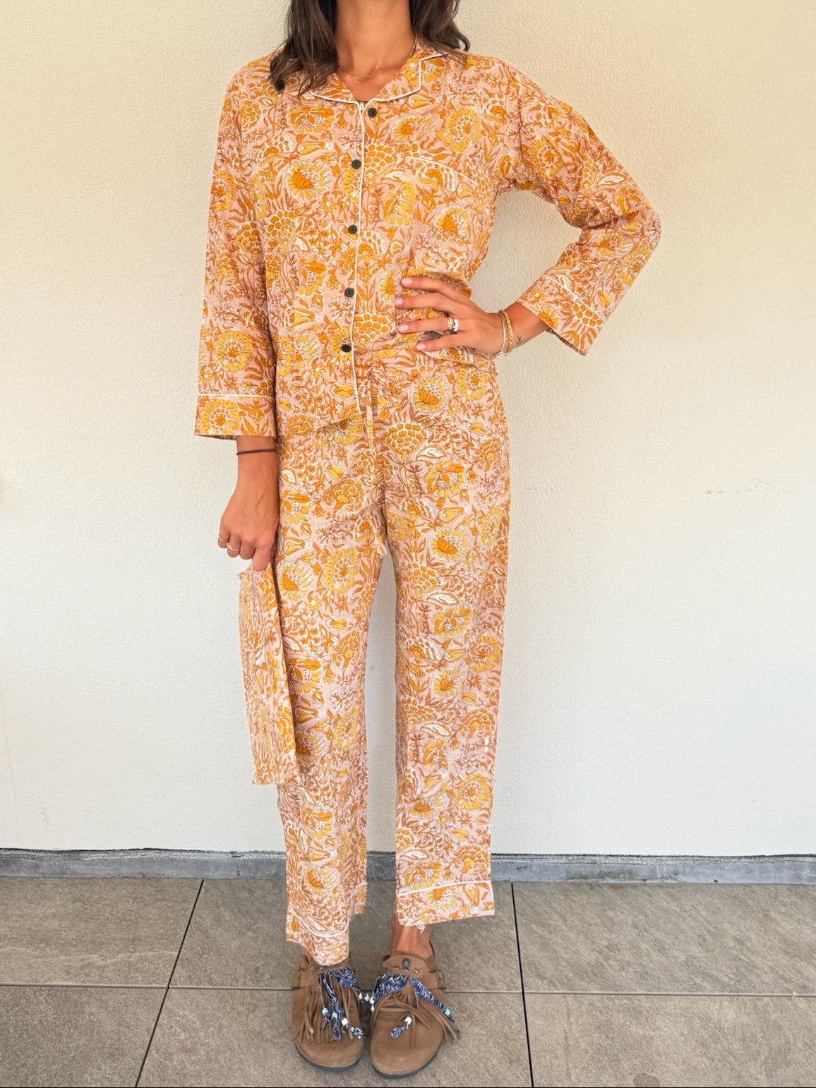 Pigiama 100% puro cotone organico fantasia floreale, made in Jaipur