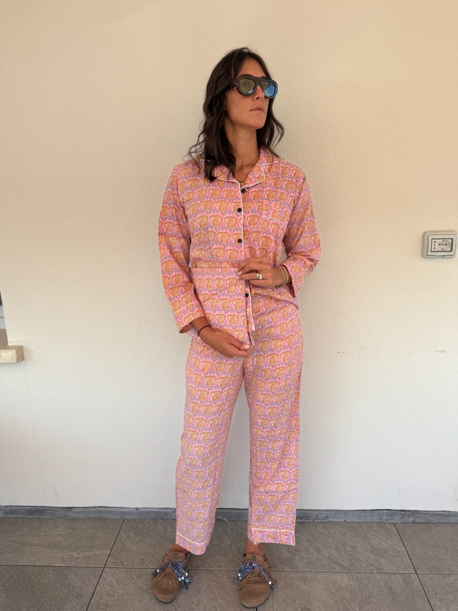 Pigiama 100% puro cotone organico fantasia floreale, made in Jaipur