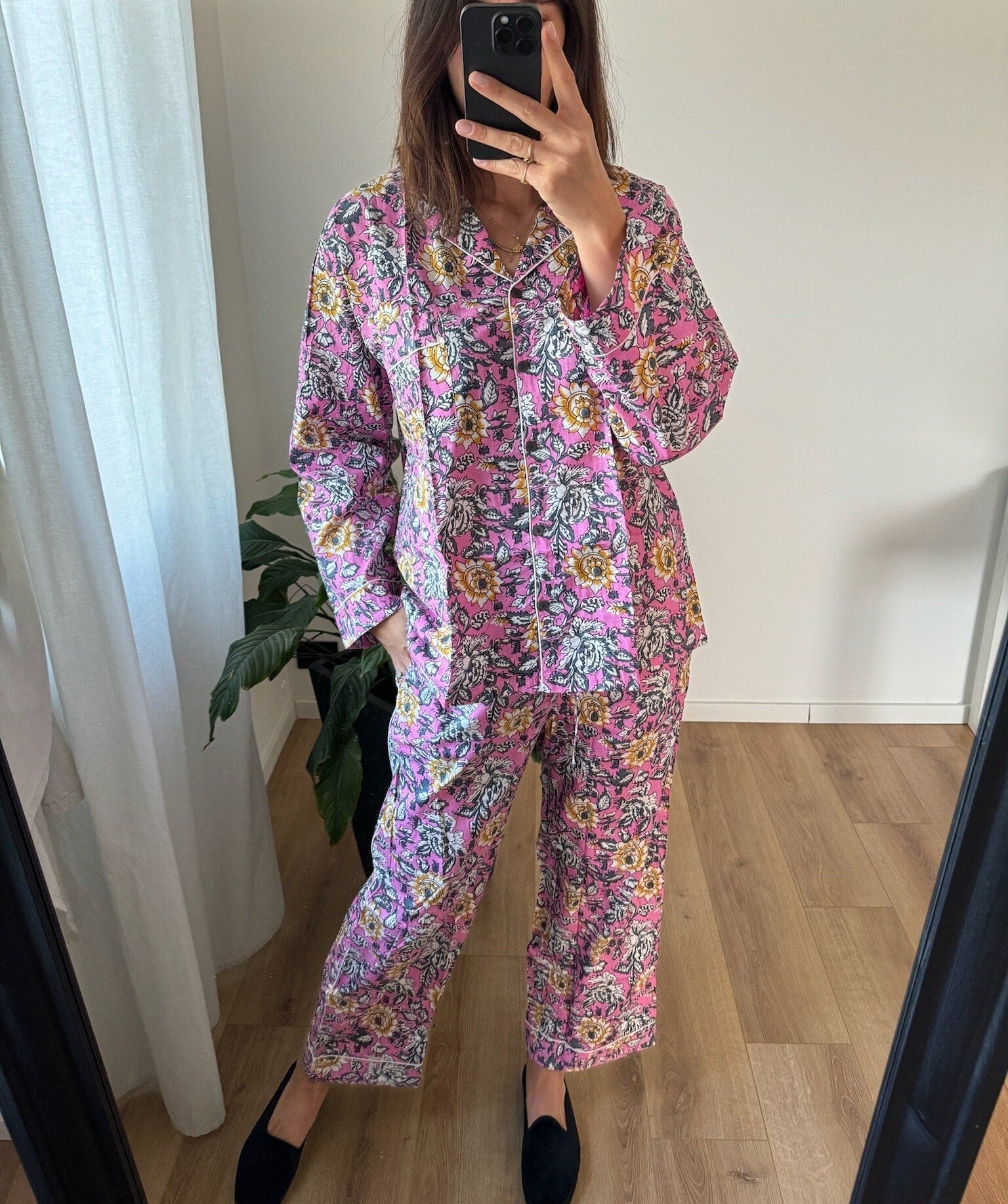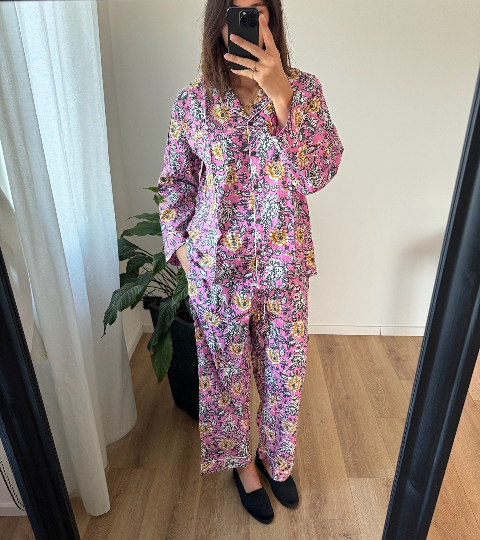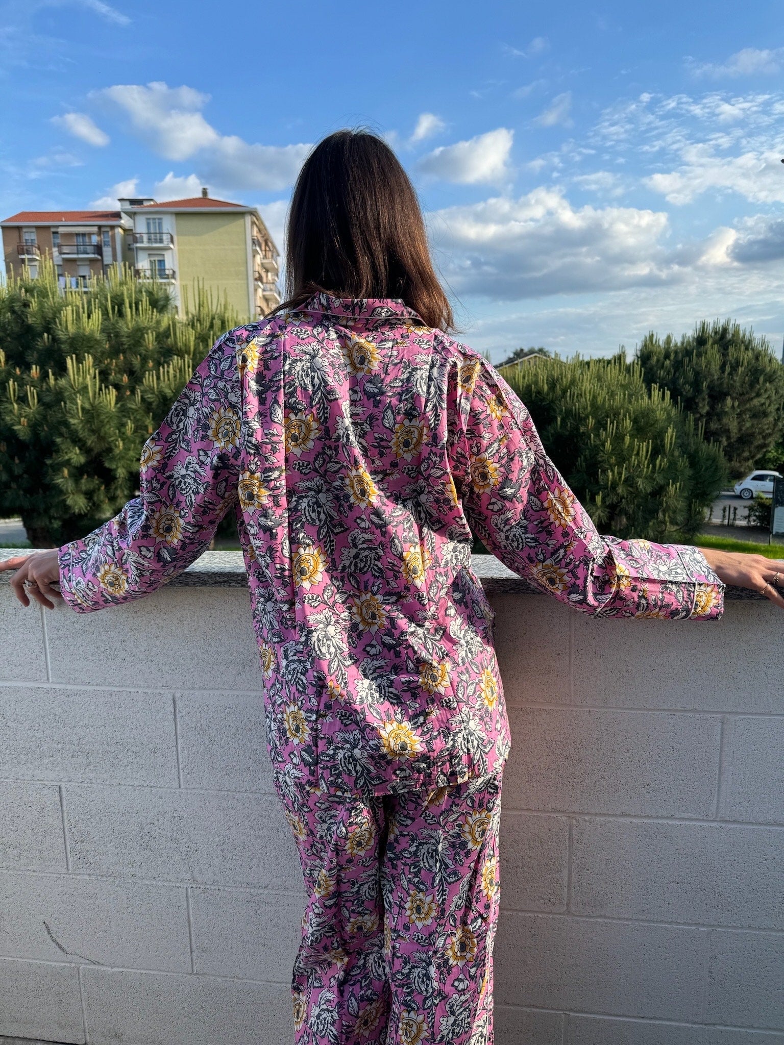Pigiama 100% puro cotone organico fantasia floreale, made in Jaipur