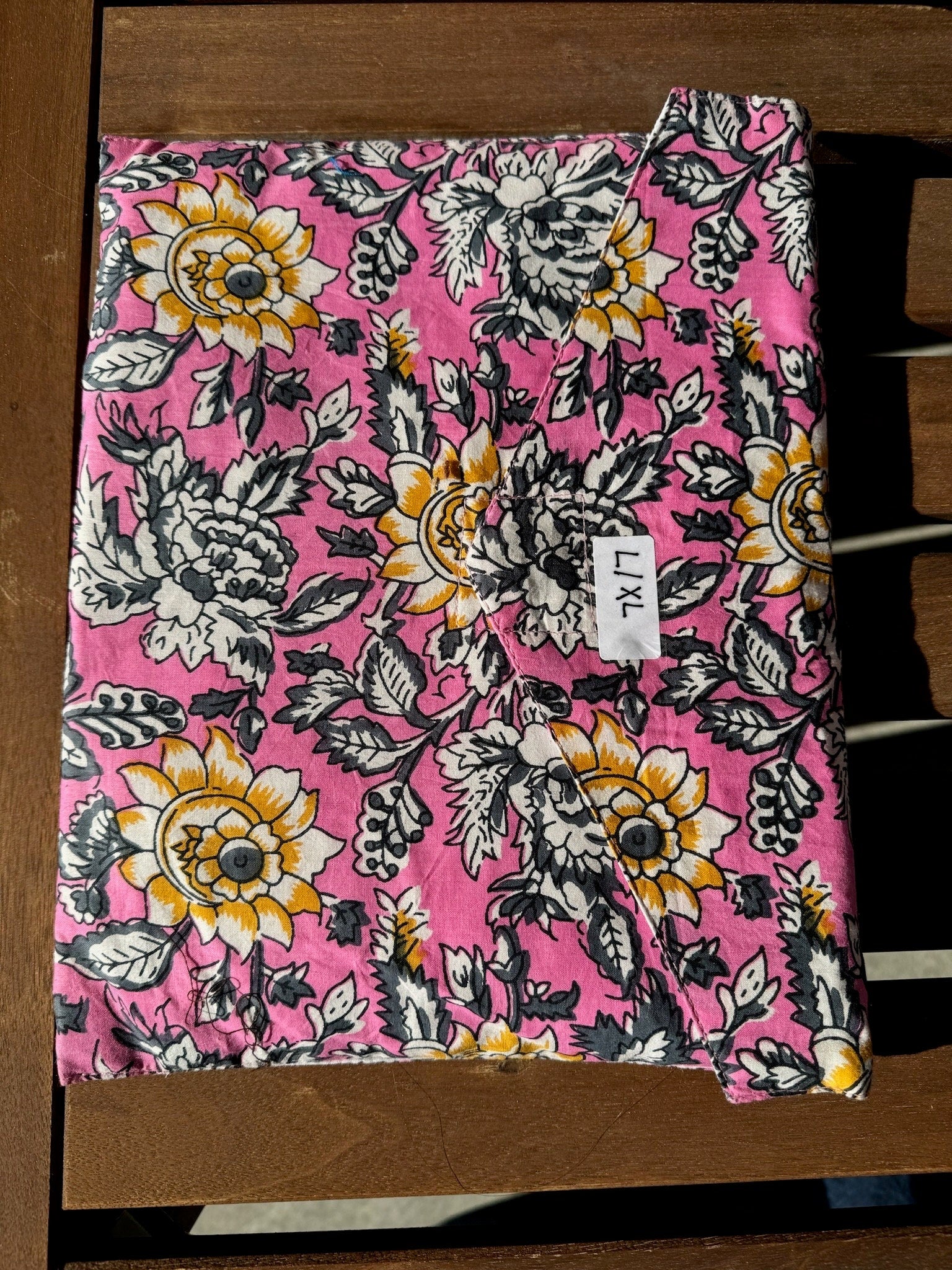 Realizzato interamente a mano dai nostri artigiani a Jaipur, questo pigiama è un omaggio all’eleganza e alla bellezza dell’artigianato autentico. Il tessuto in cotone organico, morbido e leggero, è stampato a mano secondo le tecniche tradizionali, rendendo ogni pezzo unico.