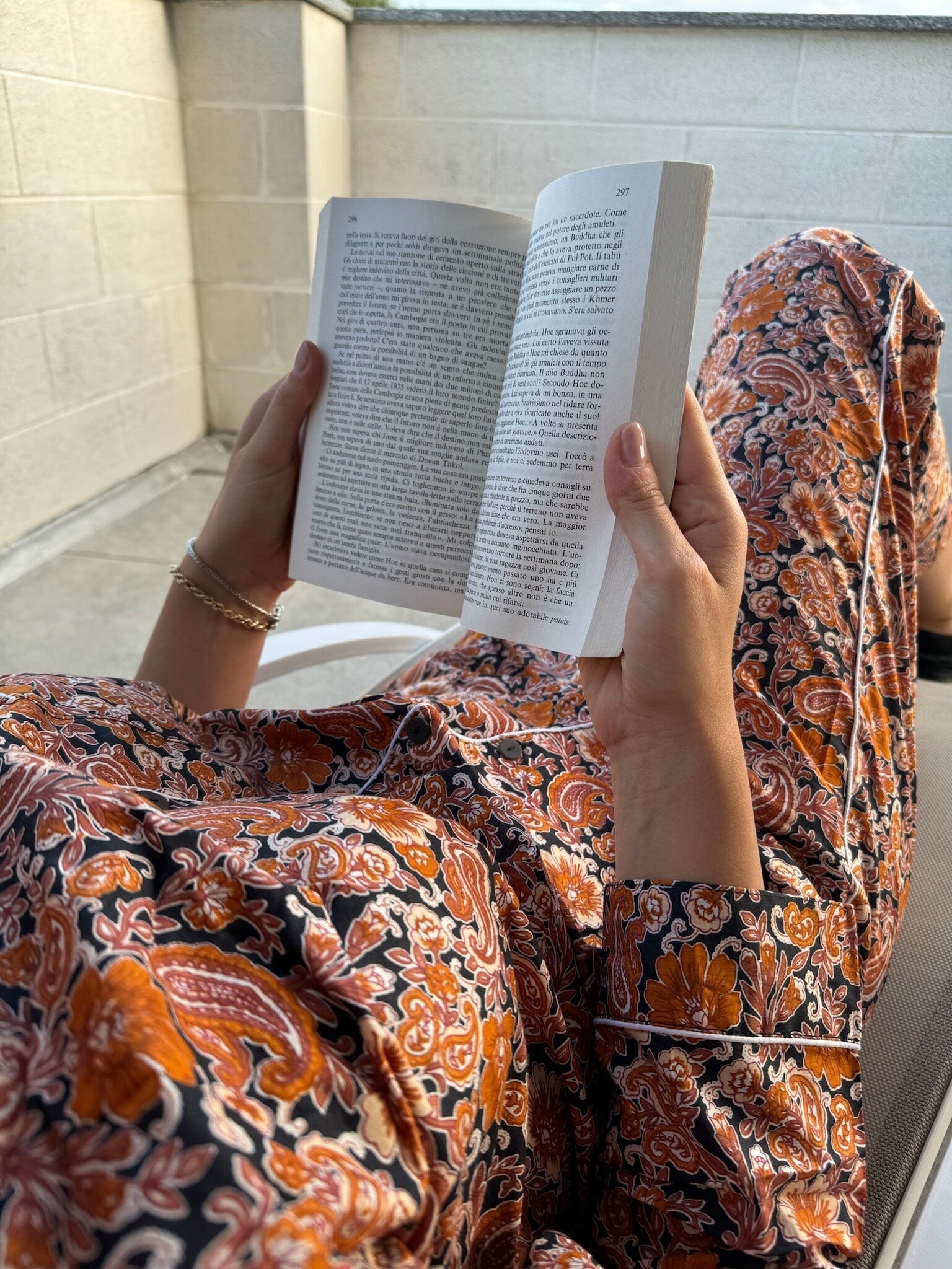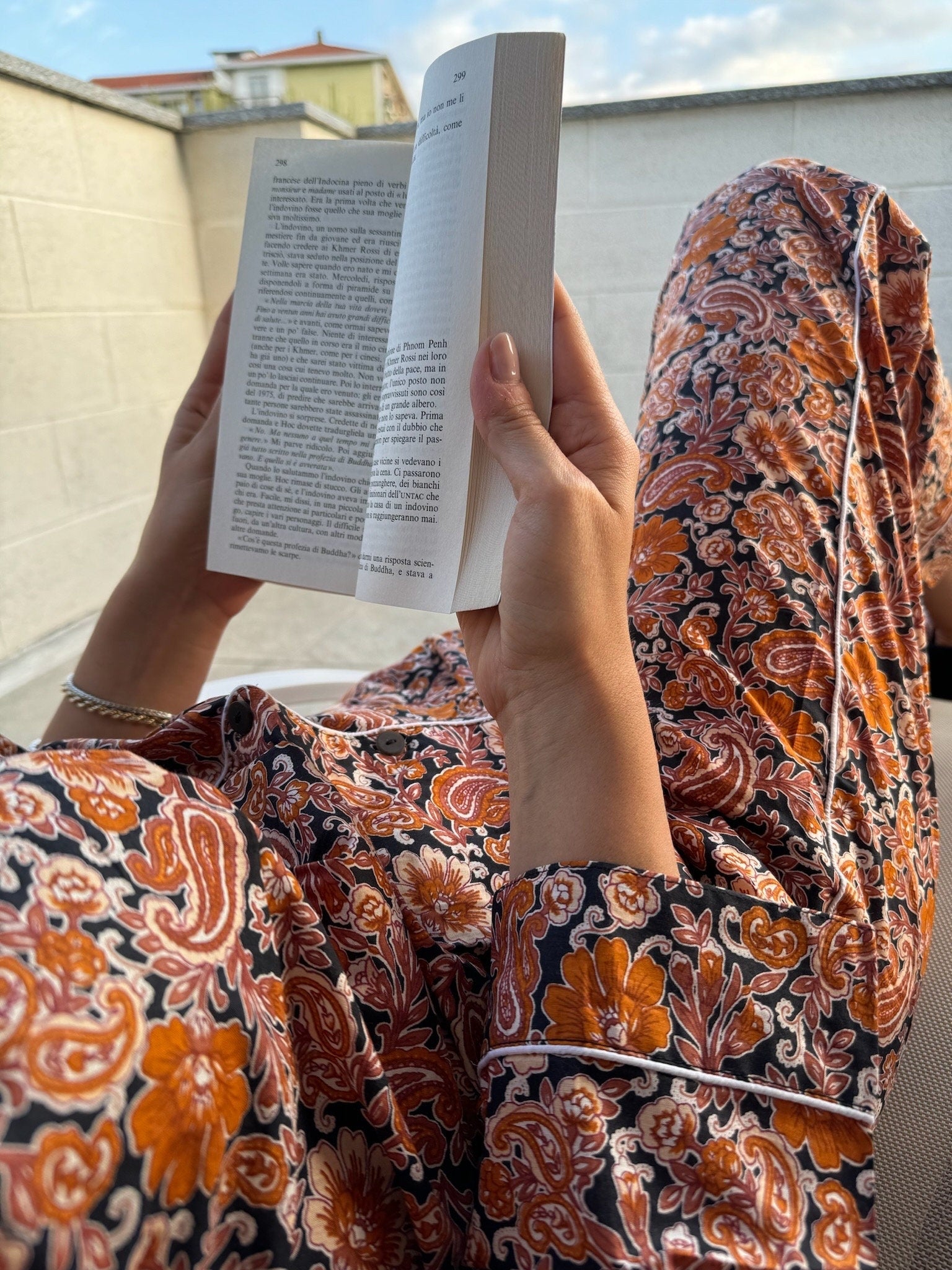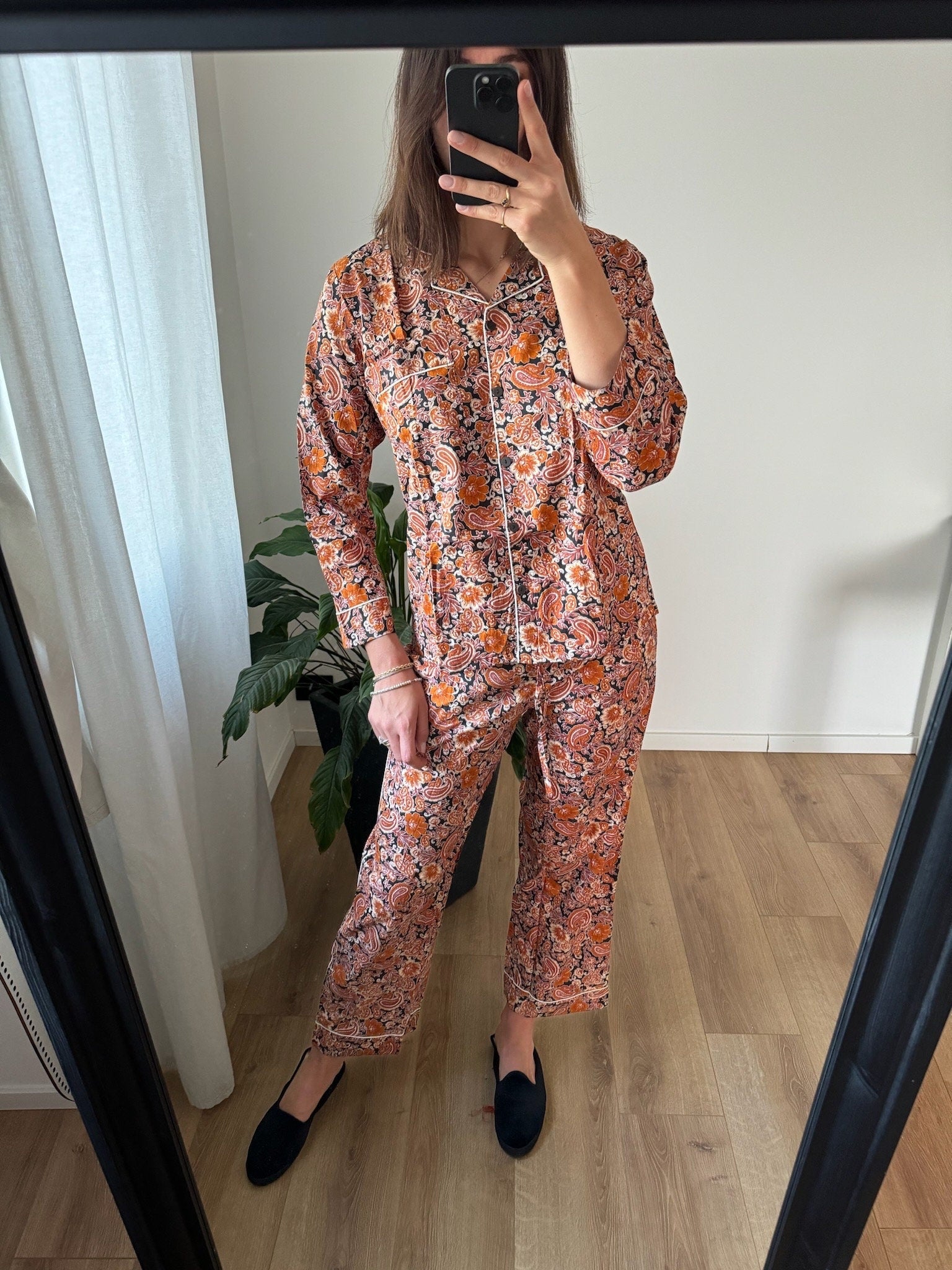 Il set è composto da una camicia a maniche lunghe con bottoni e pantaloni dalla vestibilità ampia, pensati per offrire il massimo comfort in ogni stagione. È l’alleato perfetto da portare in viaggio, da indossare a casa, o per vivere con stile momenti speciali – dai servizi fotografici ai ricordi più intimi.