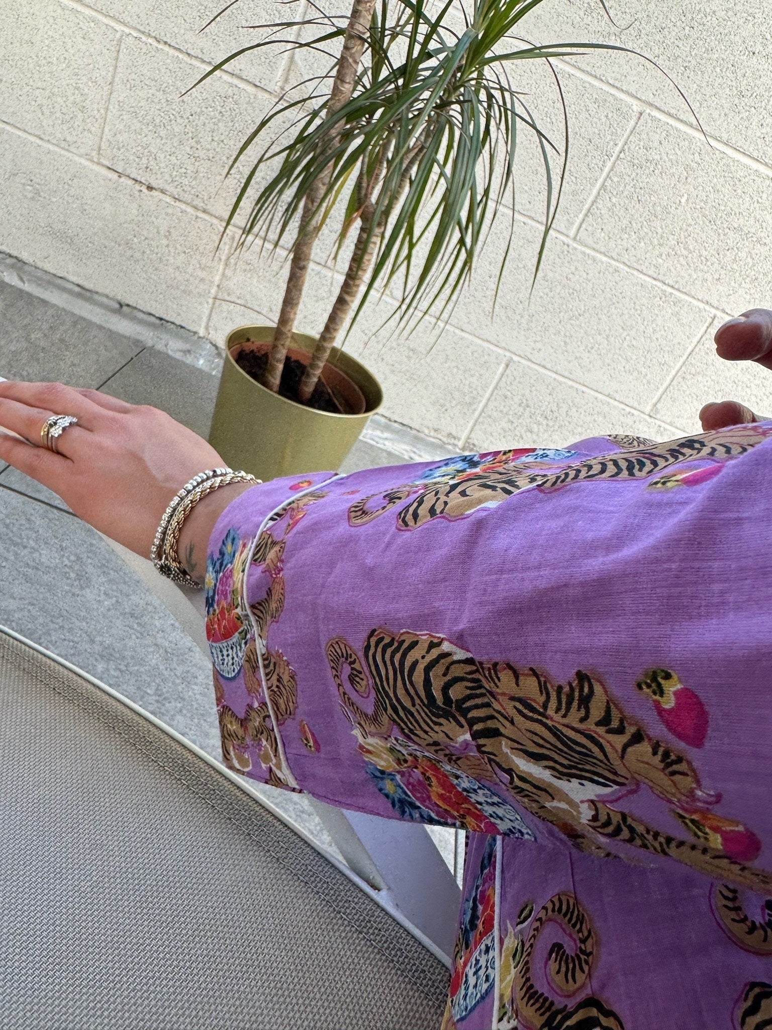 Realizzato interamente a mano dai nostri artigiani a Jaipur, questo pigiama è un omaggio all’eleganza e alla bellezza dell’artigianato autentico. Il tessuto in cotone organico, morbido e leggero, è stampato a mano secondo le tecniche tradizionali, rendendo ogni pezzo unico.